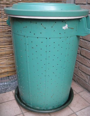 Ho dimenticato un dettaglio importante!!!!….scusate….allora, bisogna mettere un sottovaso sotto il bidone e mettere tra il sottovaso ed il bidone delle listarelle (io ho usato dei pezzi di coprifili di plastica) in modo tale che il bidone sia rialzato e che ci sia spazio tra esso e il sottovaso, questo serve perchè il percolato deve andare giù fino così a venir raccolto dal sottovaso….e qui cosa importante…di tanto in tanto il sottovaso và svuotato se no sì che attira gli insetti, ma è un lavoro che và fatto veramente di rado …